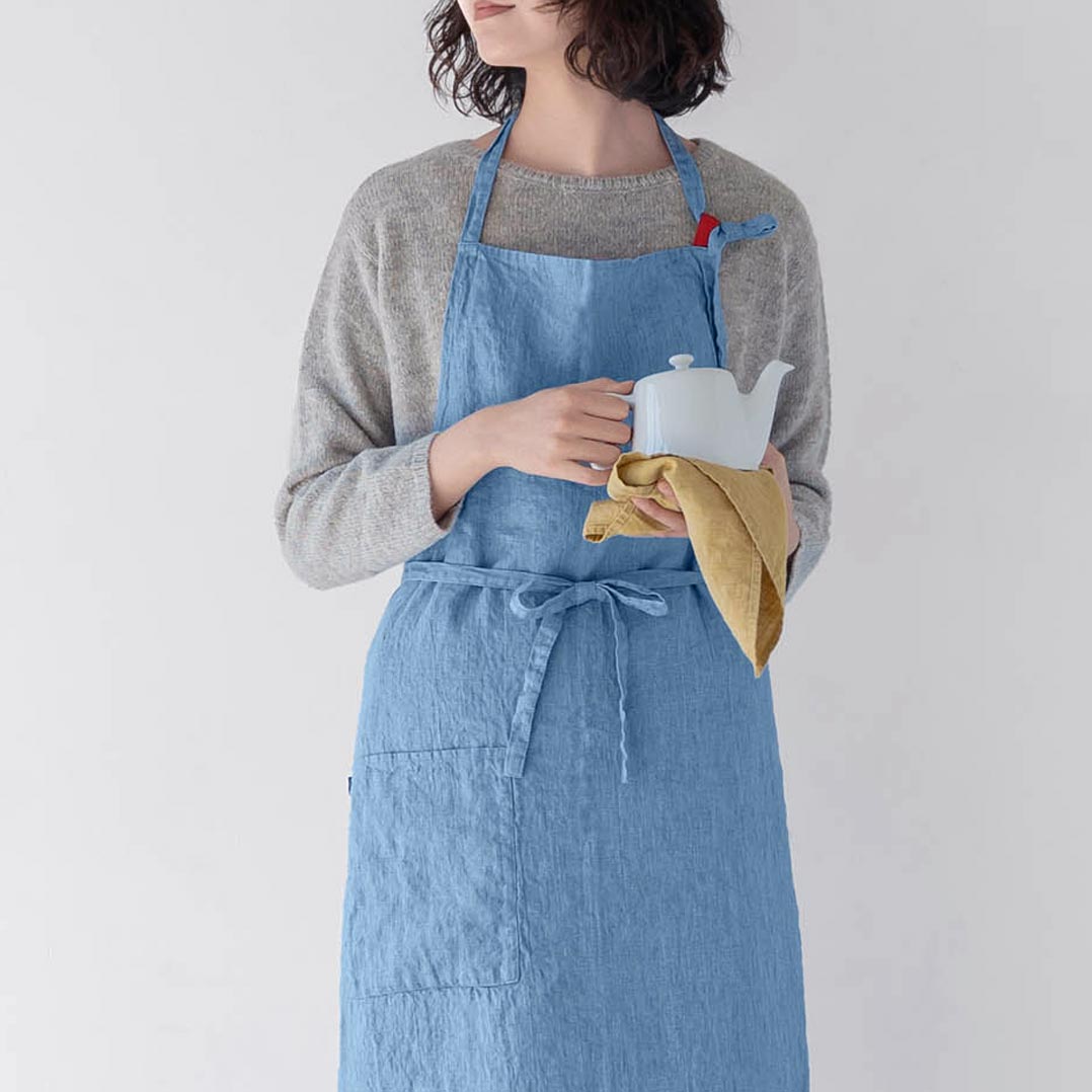 Our aprons, the best-selling line of Lino e Lina, have been loved by our customers for a long time and come in various colors. All are made of washed pure linen, so very soft, comfortable, and appropriate for daily house work.