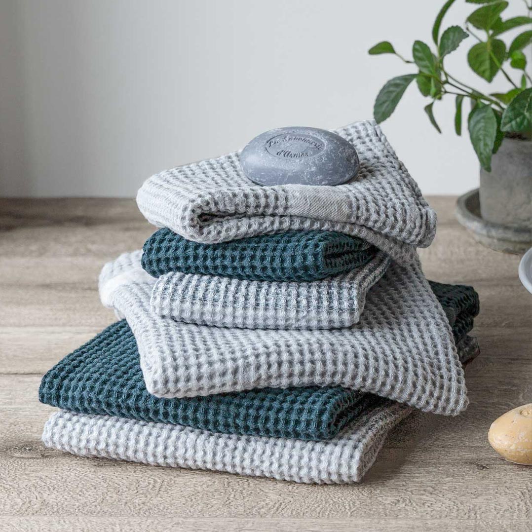 Our bath linens, made of washed pure linen, are soft and smooth. Water absorbability of linen is higher and dries faster than cotton, so it’s suitable for sanitary situations such as in the bathroom.
